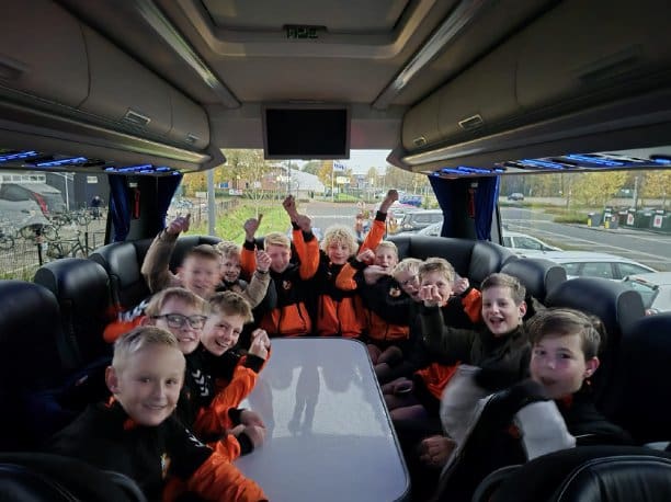 Sint heeft een Pakjesboot, maar was wel een beetje jaloers op de echte spelersbus die vanmorgen