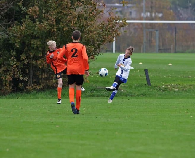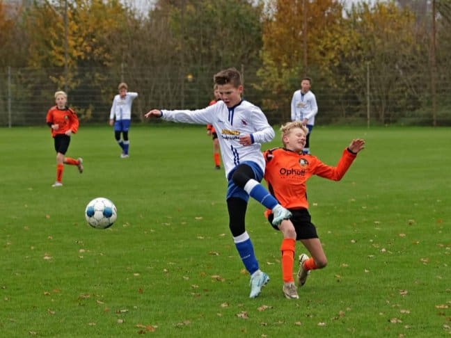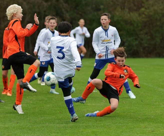 Dus blijft JO13-1 in de tweede helft met elf tegen elf knokken voor elke meter.