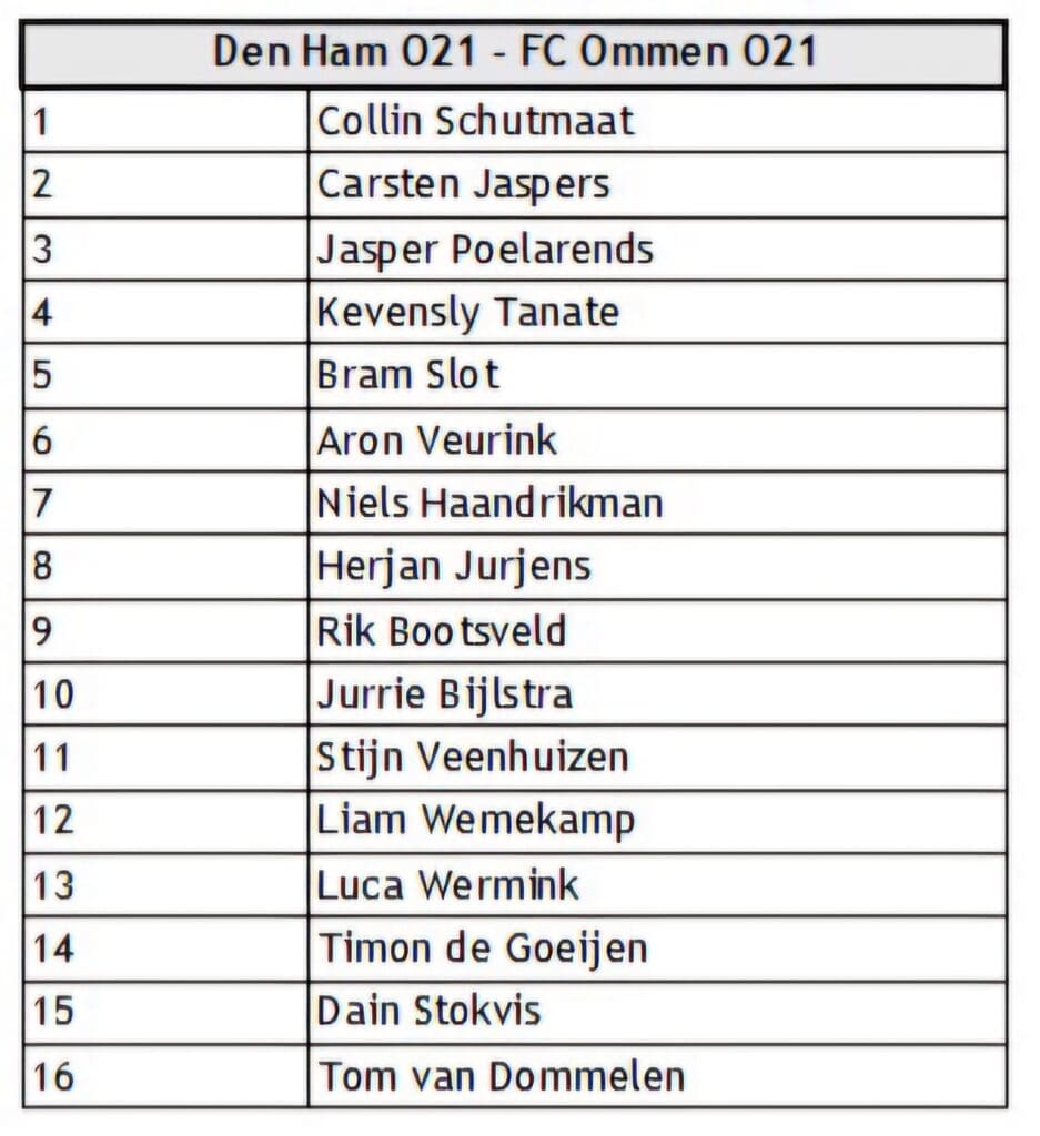 6 februari, 2026 Aanstaande dinsdag speelt Den Ham tegen Ommen! Dinsdag 10 februari 2026 20.15 uur Den Ham O21 – FC Ommen O21 Hierbij de selectie voor deze wedstrijd